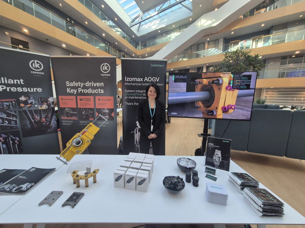 Sales Manager Alex Follington was joined by Customer Solutions Director Svein Tore Milwertz, Project Manager Stephanie Craig, and Rune Broadhurst from IK Topside. Over the course of the week, the team presented how the AOGV enables temporary mechanical isolation on operating systems, allowing maintenance and modifications to be carried out without hot work or production interruptions.